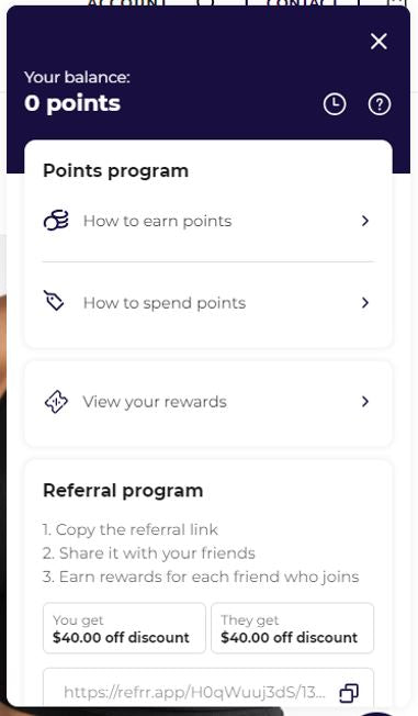 A: It is quite simple! Sign up/Log In, open the Rewards app (badge in the right corner), go to the section called “Refer your friends”, copy the link and send it to your friends. They’ll receive a $40 discount off their first purchase over $99. You’ll also receive a $40 discount voucher once they make their purchase! The more friends you refer, the more KEAN Points you earn.